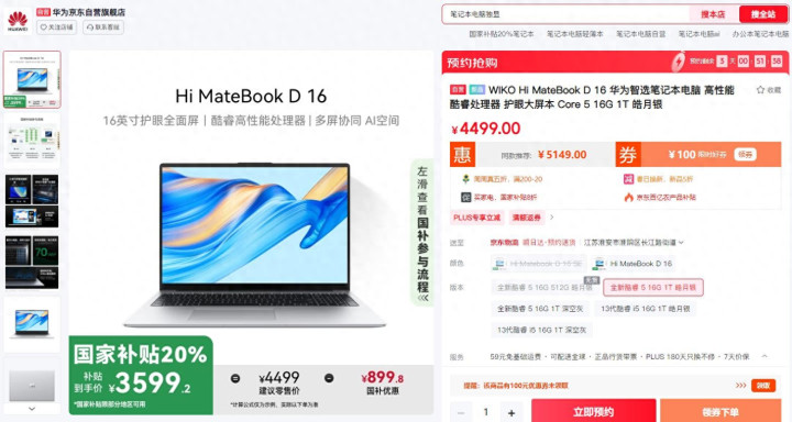 比如华为Matebook D16、华为Matebook D14,搭载Linux系统,同时价格还便宜300元。